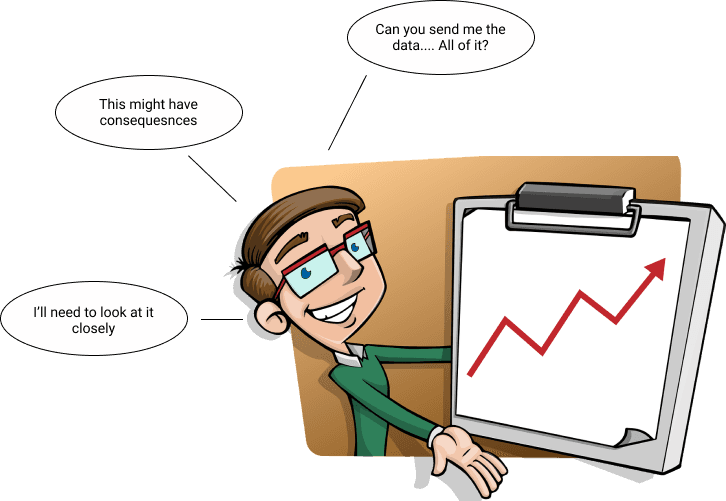 How your team can prepare: If your team is selling to Analytical Albert, train them to go prepared with all the data that will help him make a decision. Appropriate details will be important. At some point, because he can sometimes leave the data gate open longer than it needs to be, your sales reps might need to push back. But they should also take special care not to criticize as he might take that more personally than most. Advise your employees to not push him too hard before he completes his analysis.
