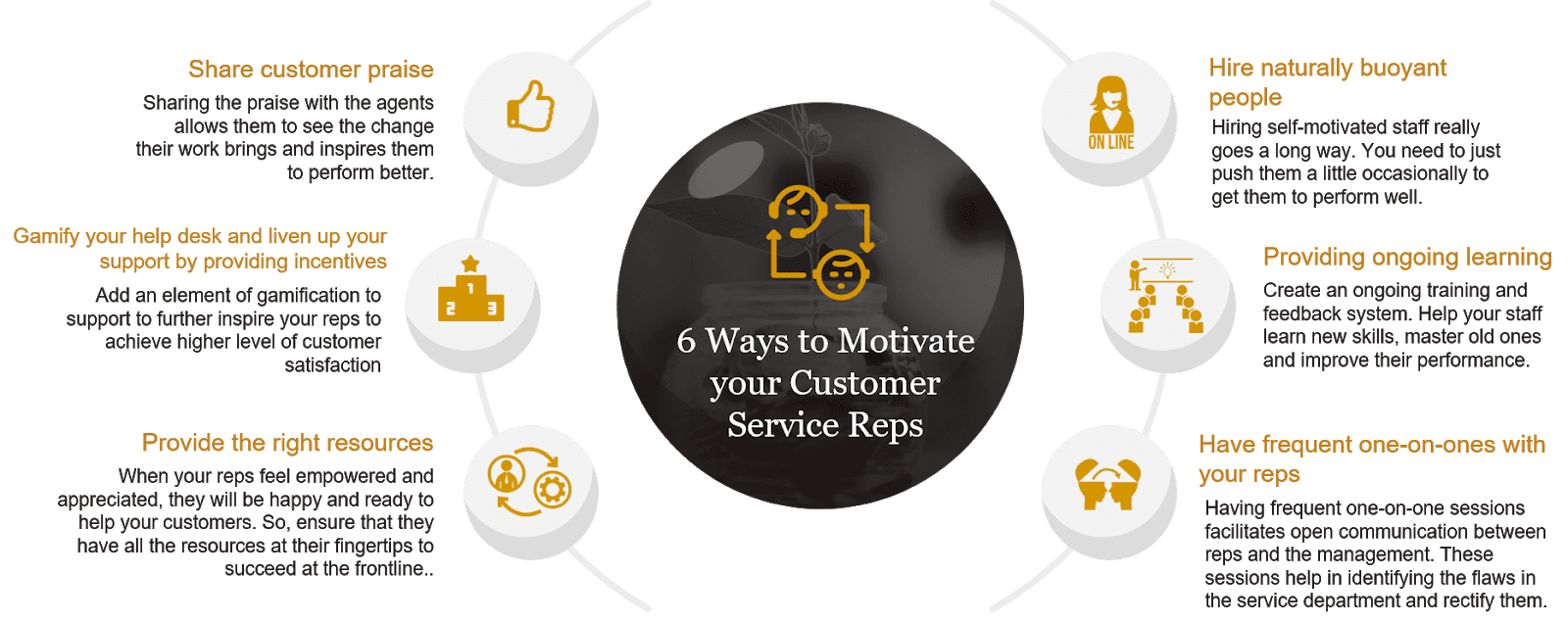 So, how can we establish a superior and customer-centric service department for our businesses? Here are six strategies that are extremely effective in motivating your service agents to help and delight your customers each and every day: