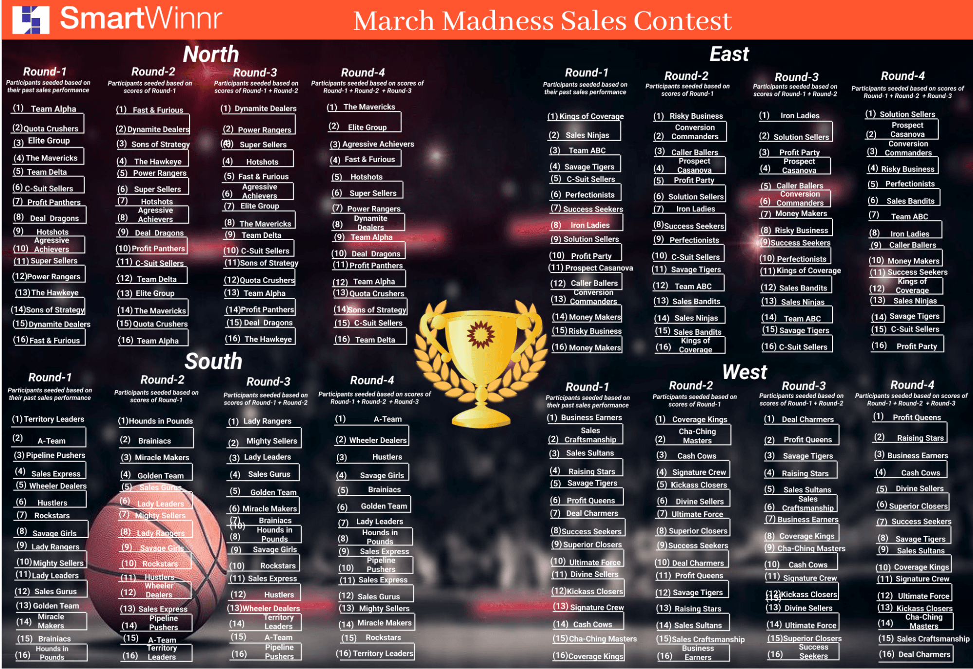 Looking for ways to motivate your sales staff to meet some crucial sales goals in the month of March? One best way to get your team going is by organizing a March Madness-themed sales tournament on your sales floor. In our previous blogs, we have explained how to run a single elimination march madness sales contest for smaller and larger sales teams.