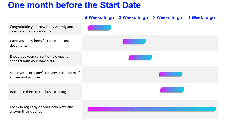 Follow this onboarding plan and give your new hires a happy beginning! This makes them enter your office all energized and excited on their first day.