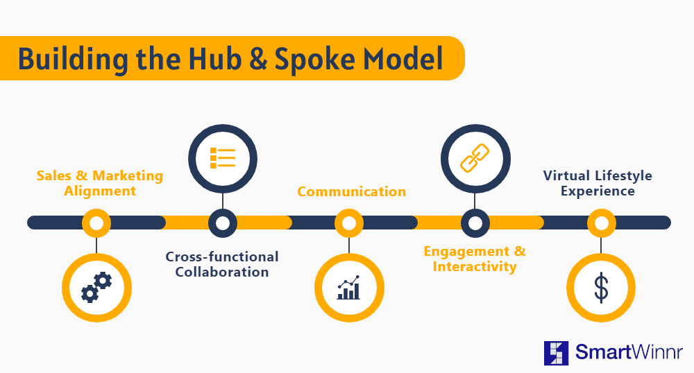 Hub and spoke model helps you to build a strong collaboration between various teams, individuals, and departments at your organization. Here are various aspects of this model: