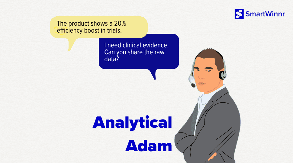 How to Prepare: When dealing with Alex, focus on- how your product can drive measurable improvements in patient outcomes. MRs should engage in role-plays that simulate high-pressure scenarios. Such as quick decision-making in competitive pitches or sales strategy and planning on how to present data.