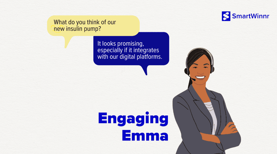 → Rep: "Emma, good to get some insights from you on diabetes management. What are your thoughts on our new insulin pump.”