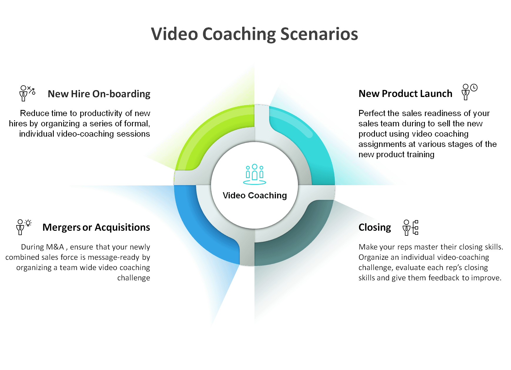 When your organization is launching a new product, your sales team needs to be well equipped with all the information necessary to sell that new offering. Video coaching is very effective in perfecting the sales readiness of reps in selling the new product. Some scenarios that we have seen works best during a new product launch