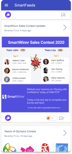 Why should you encourage collaboration in your sales contest? Keeps the engagement high. Participants are excited, and they have a single place from where they communicate with each other. It facilitates team-work and peer-to-peer collaboration. It significantly improves their chances of winning in the contest.